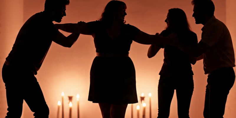 terrace की candlelight aur humid air ने teasing aur blush का intensity aur electric aur forbidden thrill maintain किया।terrace का पूरा environment अब चारों की intimate aur playful interactions के लिए ready aur suspenseful था।